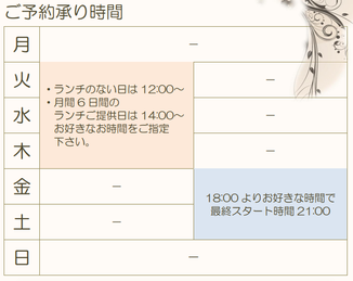 ※△日はお時間を調整させて頂くことがございます。ご希望のお時間でご予約くださいませ。